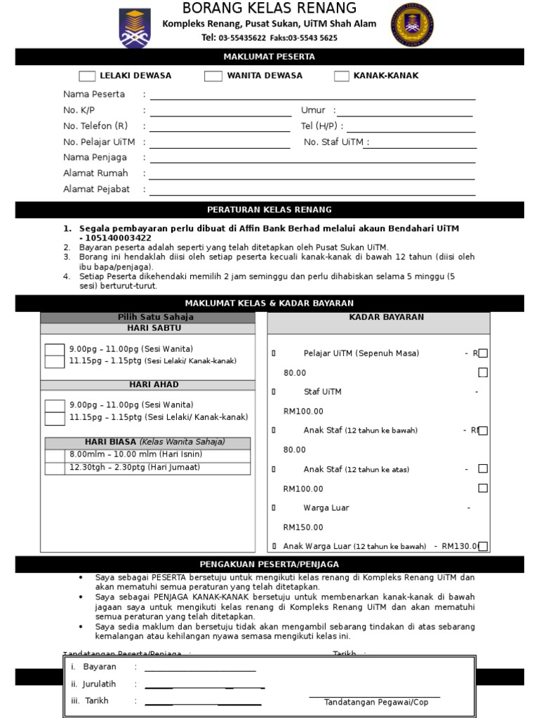 Kolam Renang Uitm Borang Kelas Renang Dengan Akaun No
