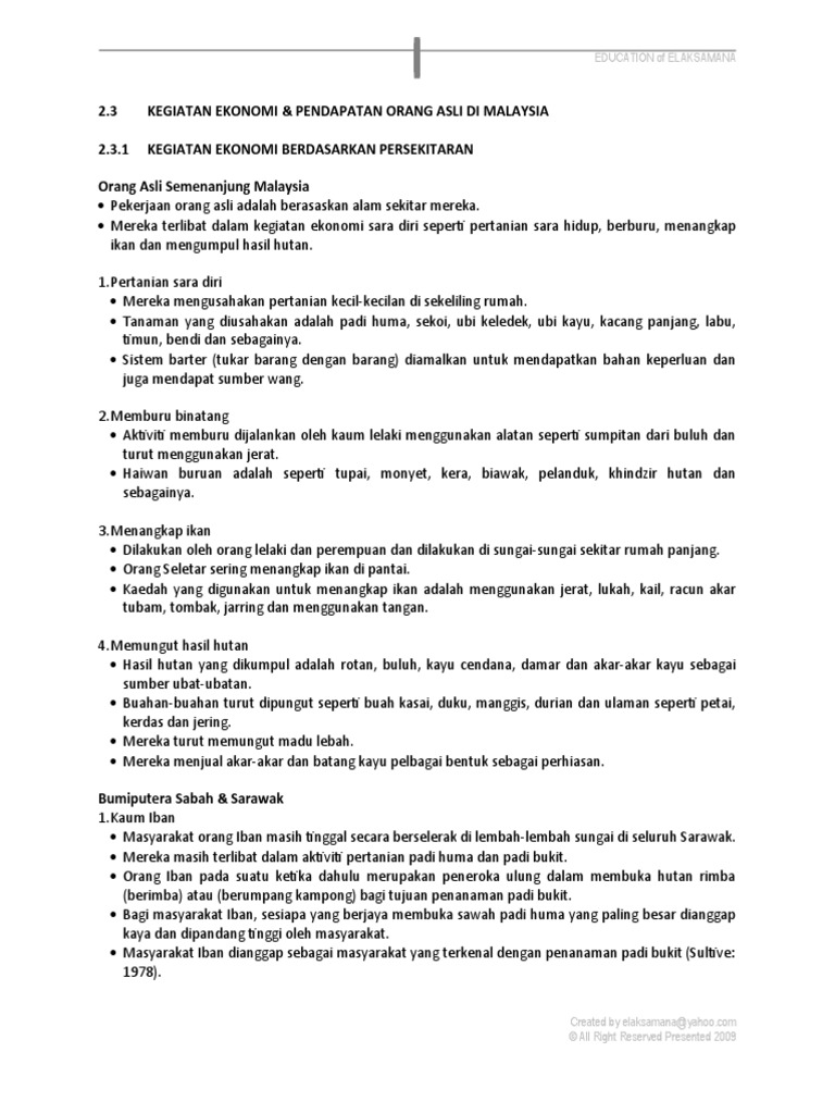 2 3 Kegiatan Ekonomi Orang Asli Malaysia
