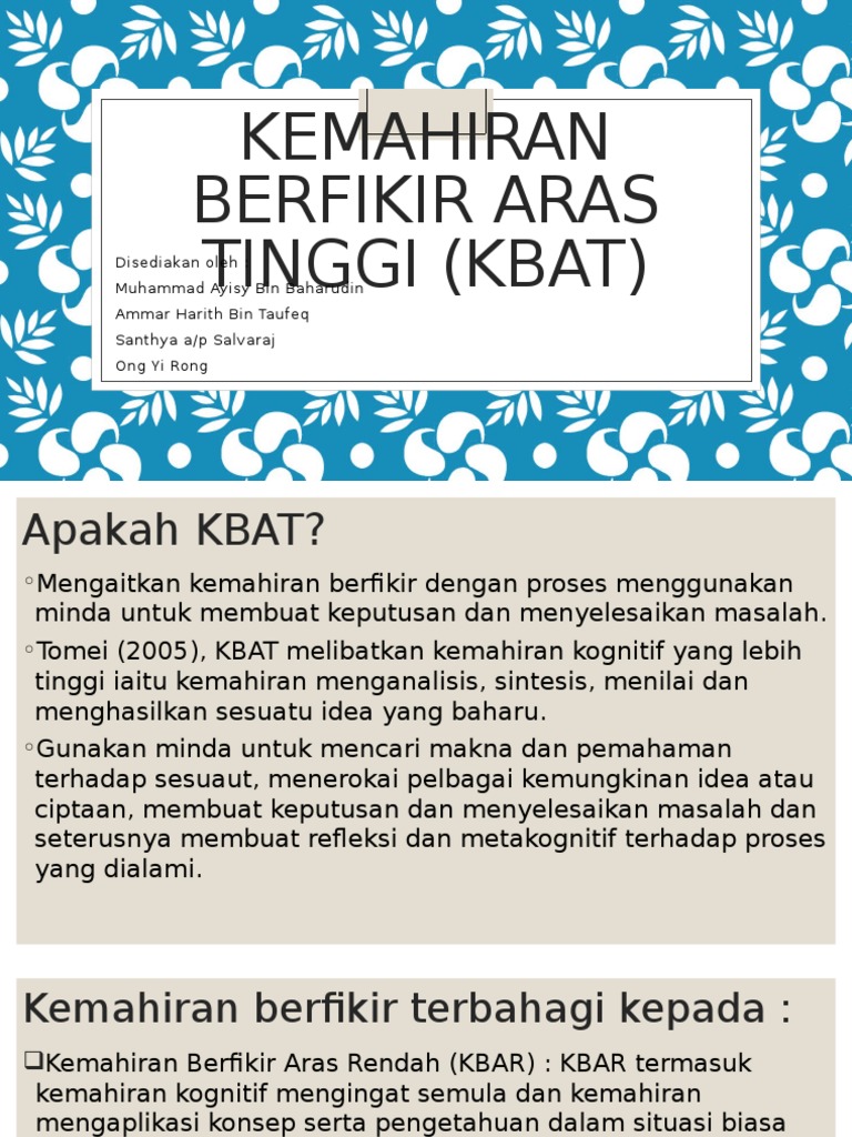 Kemahiran Berfikir Aras Tinggi Kbat Pptx