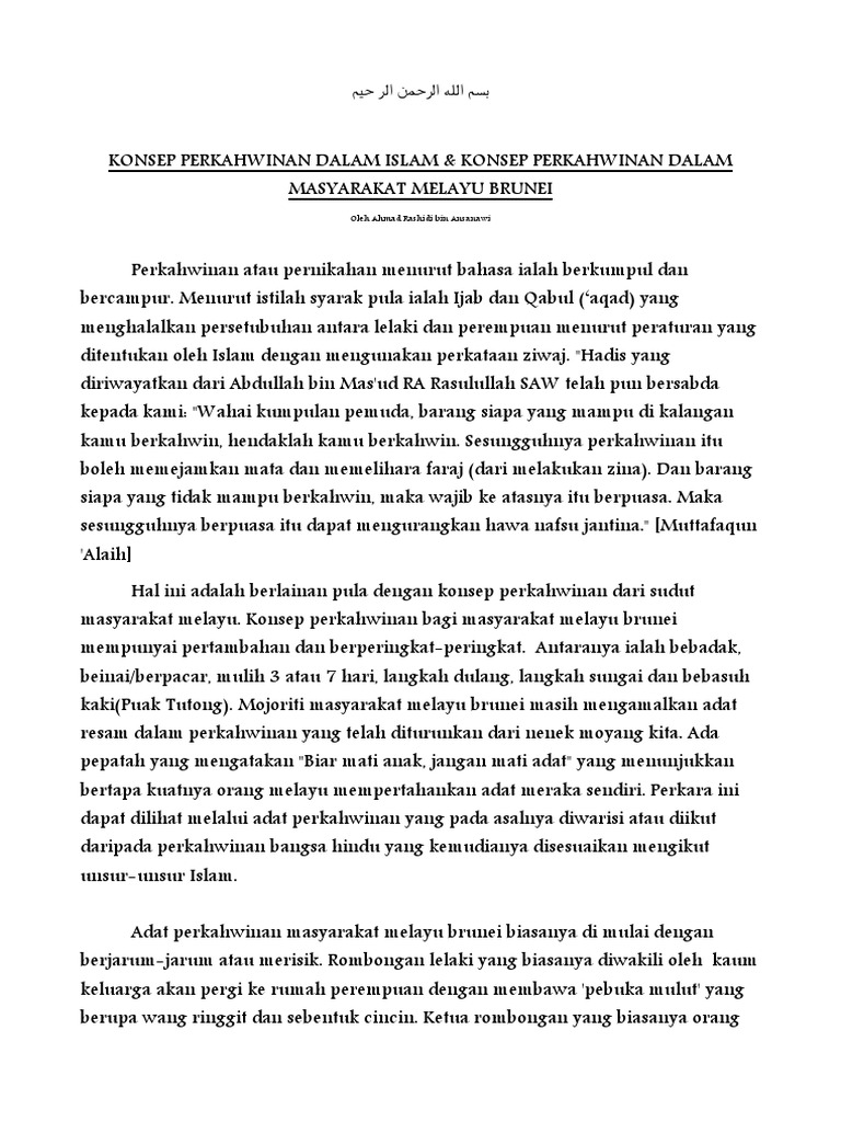 Konsep Perkahwinan Dalam Islam Konsep Perkahwinan Dalam Masyarakat Melayu Brunei