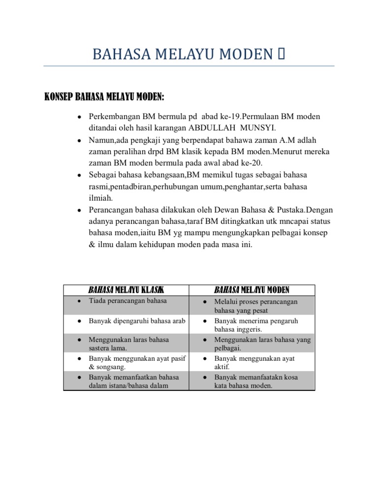 Ciri ciri bahasa klasik ialah. Penggunaan perkataan a bahasa istana santap beradu gering bersiram b kosa kata klasik masygul dukacita berahi cinta c kata pangkal ayat perdu ayat. Selepas itu bahasa melayu mengalami banyak perubahan dari segi kosa kata struktur ayat dan tulisan.