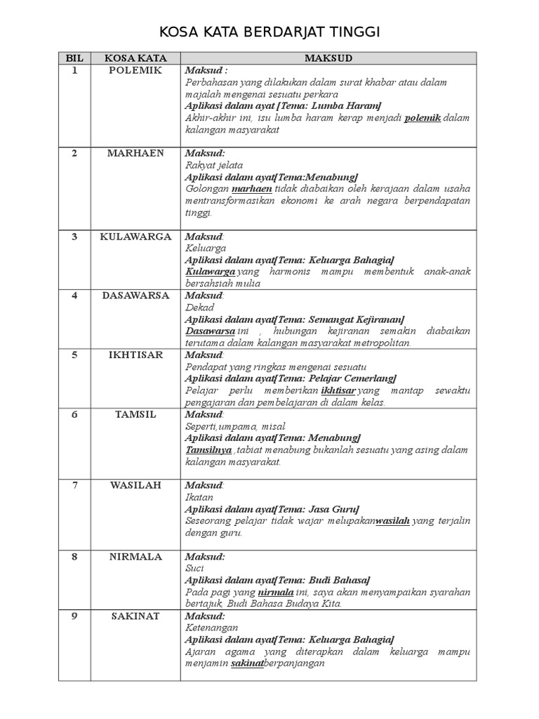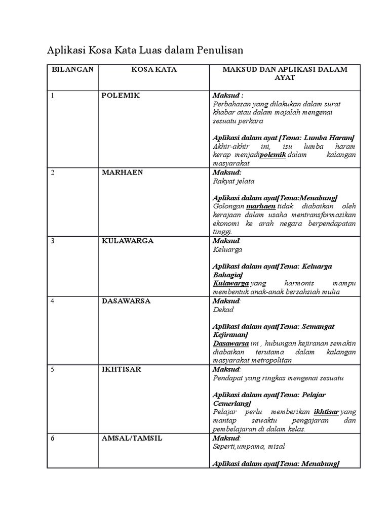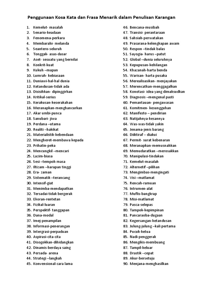 Kosa Kata Dan Ungkapan Menarik Bahasa Melayu Spm