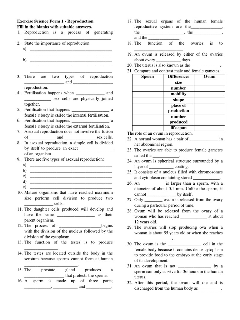 Exercise Science Form 1 Fertilisation Female