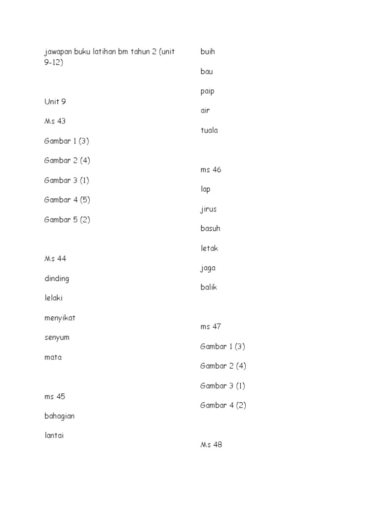 Jawapan Buku Aktiviti Bm Tahun 2 Unit 9 12