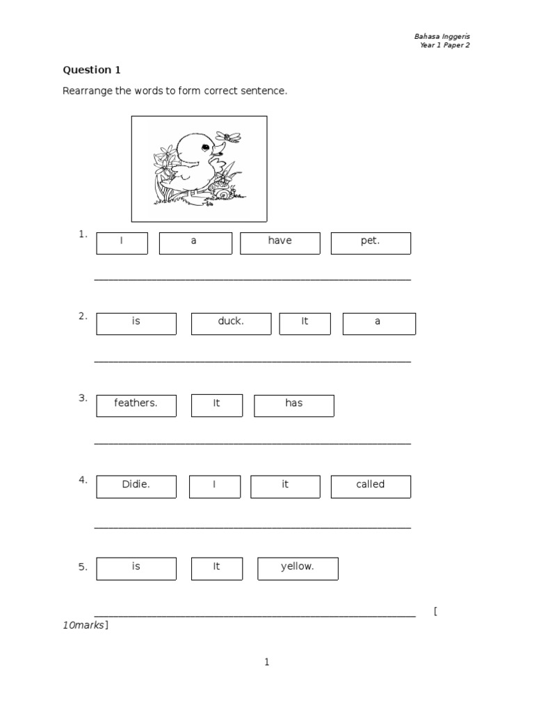 English Year 2 Kssr Monthy Test English Exam Papers English Exam Year 2 English Worksheets