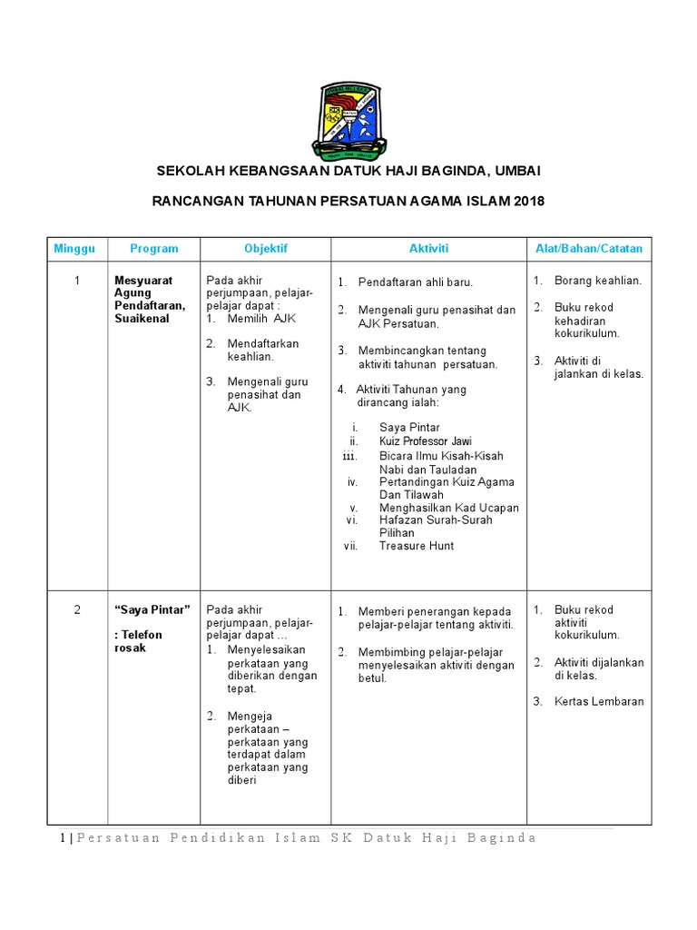 Rpt Persatuan Pendidikan Agama Islam Doc