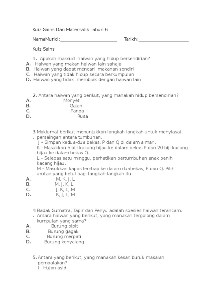 Senarai Terbesar Kuiz Sains Tahun 2 Yang Bermanfaat Dan Boleh Di Lihat Dengan Segera Pekeliling Terbaru Kerajaan