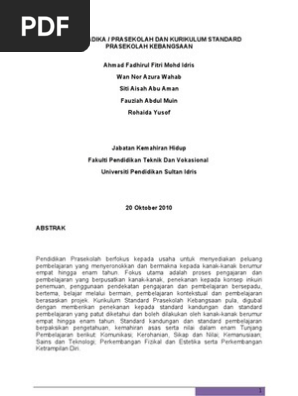 Kurikulum Standard Prasekolah Kebangsaan Kspk Pdf Free Download