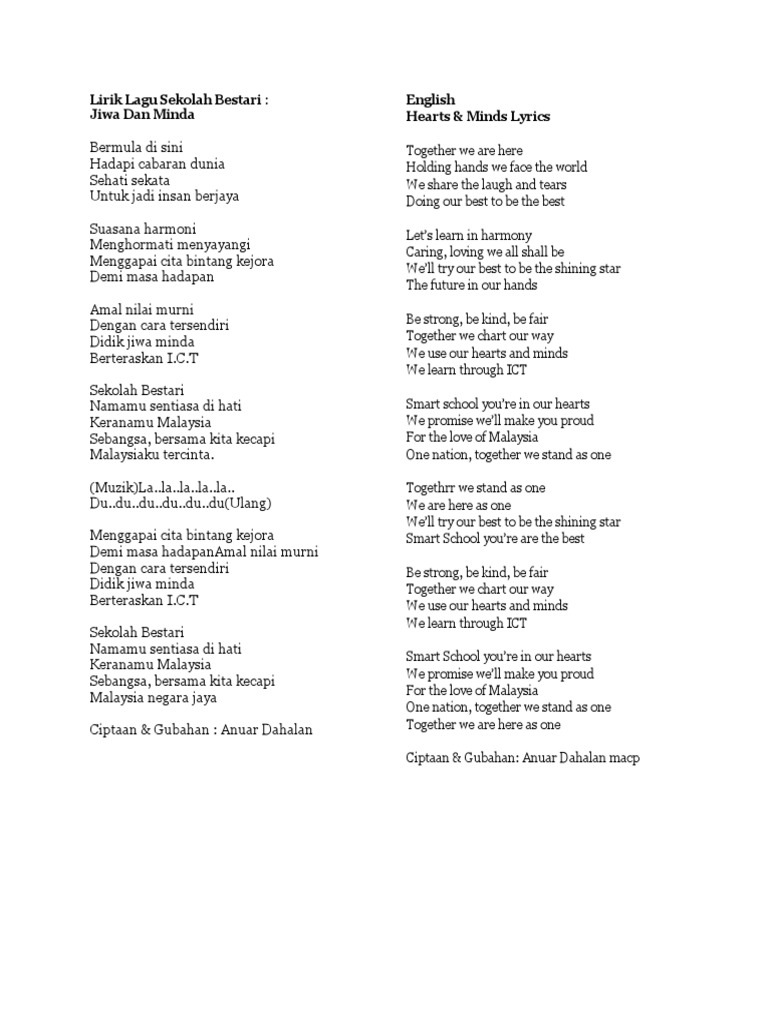 Lirik Lagu Sekolah Bestari