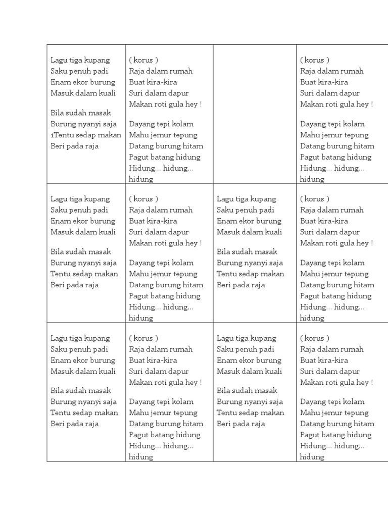 Lagu Tiga Kupang Lirik Lagu Kanak Kanak