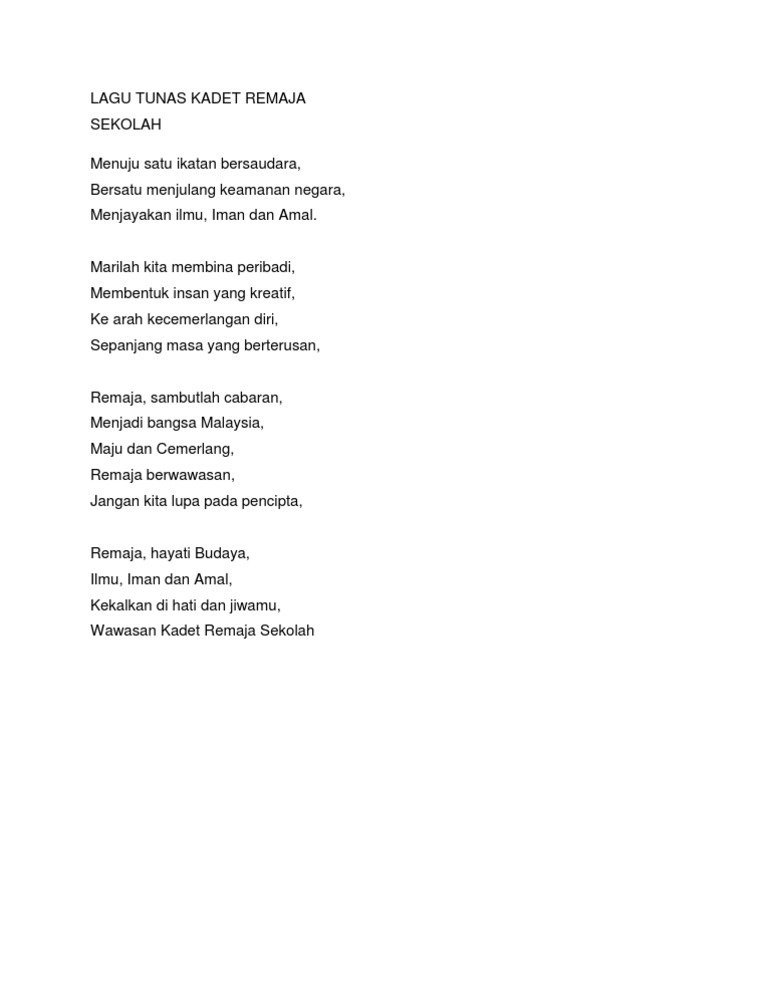 Lirik Lagu Tunas Kadet Remaja Sekolah Tunas Kadet Remaja Sekolah