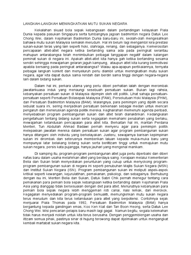 Langkah Langkah Meningkatkan Mutu Sukan Negara Docx