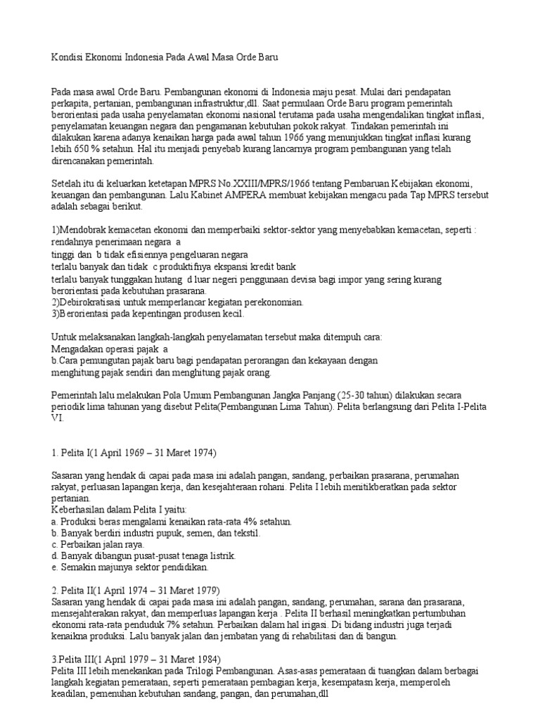 Kondisi Ekonomi Indonesia Pada Awal Masa Orde Baru