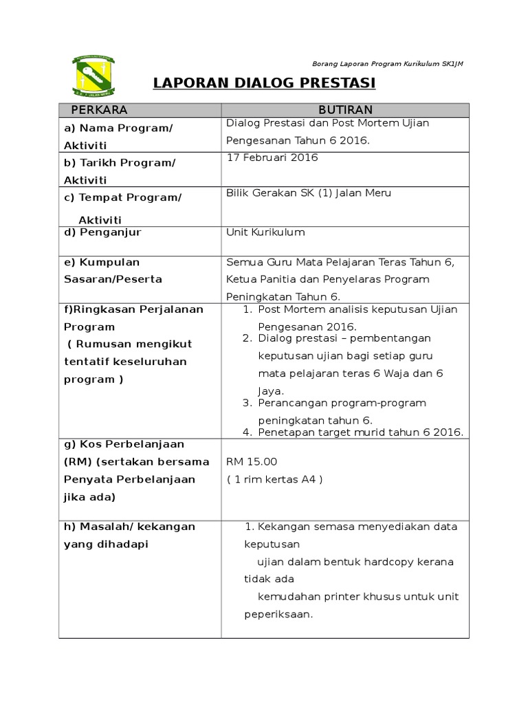 Borang Laporan Program