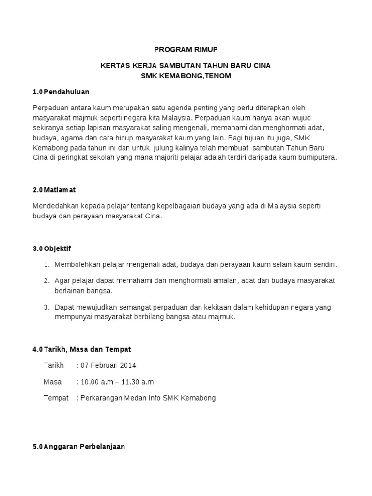 Laporan kajian perayaan tahun baru cina 1 0 pengenalan di negara yang mempunyai masyarakat berbilang kaum seperti di malaysia terdapat pelbagai jenis perayaan untuk disambut pada setiap tahun negara malaysia yang terdiri daripada tiga kaum majoriti iaitu kaum melayu. Pameran bertema tahun baru cina diadakan pada 4 22 februari 2013. Pengenalan sambutan chinese new year smktm 2 2012 adalah salah satu daripada aktivitiyang diadakan bagi menyambut perayaan tahun baru cina 2012.