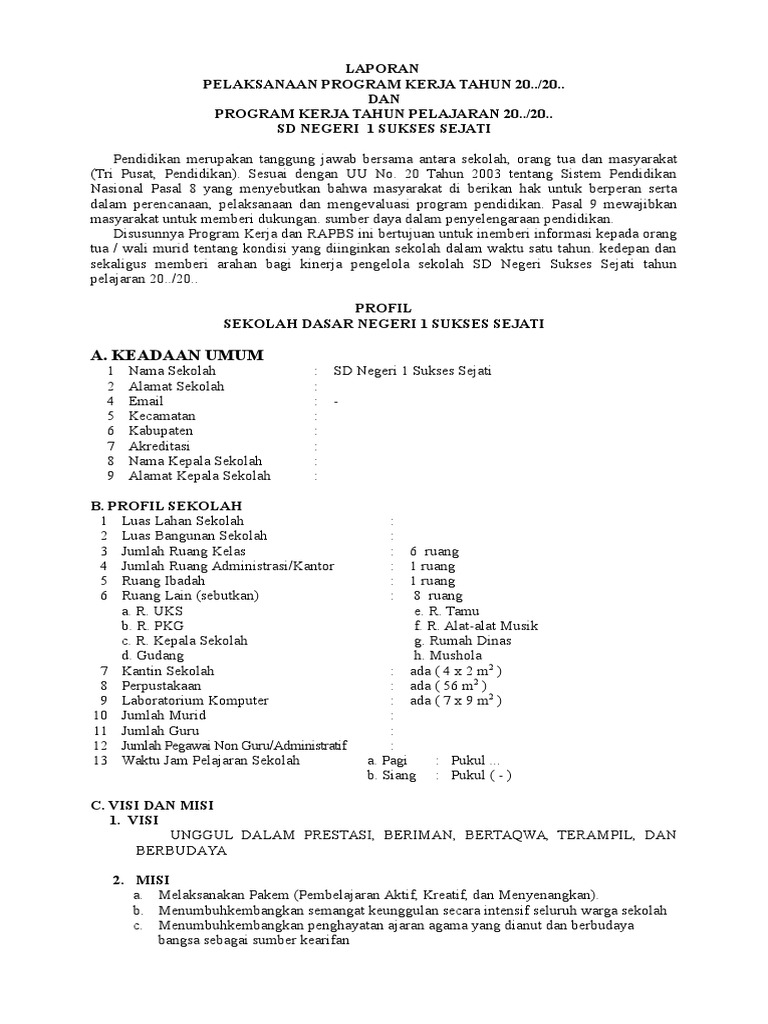Download Contoh Laporan Dan Program Kerja Tahunan Sekolah Website Pendidikan