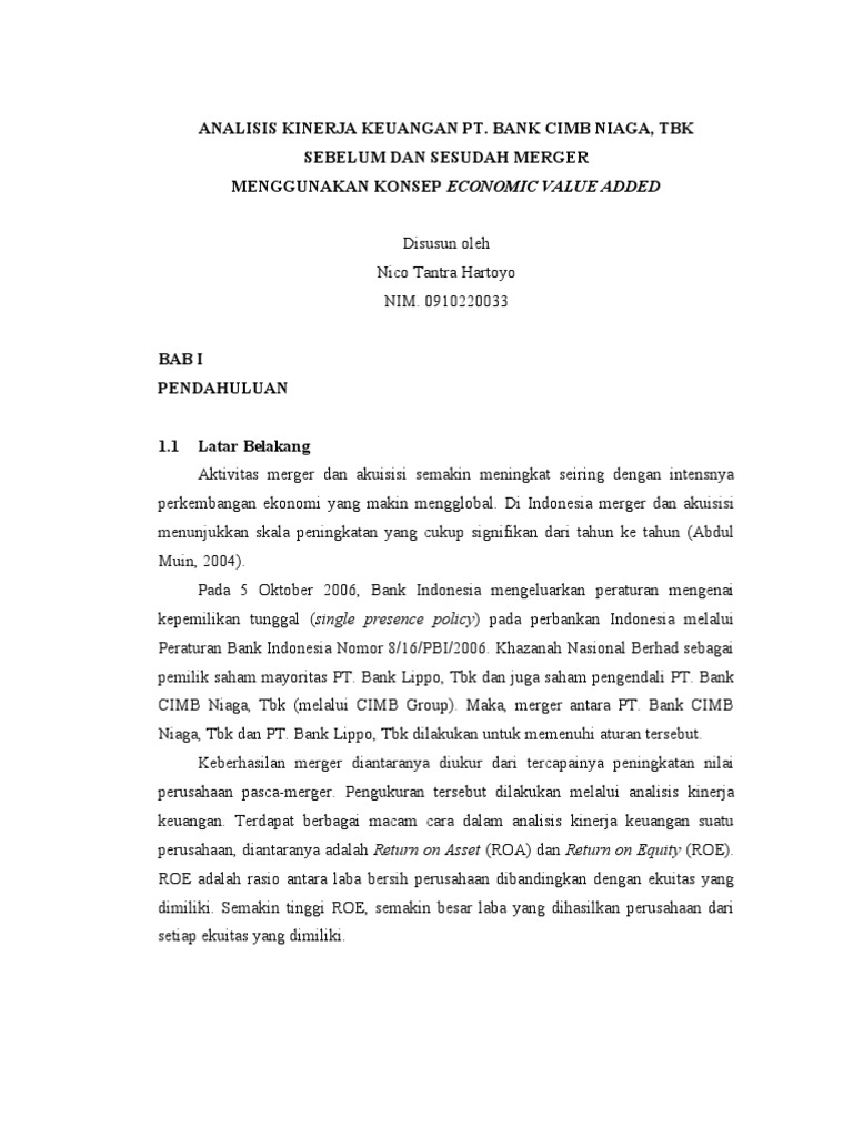 Analisis Kinerja Keuangan Pt Bank Cimb Niaga Tbk Sebelum Dan Sesudah Merger Menggunakan Konsep Eva Doc
