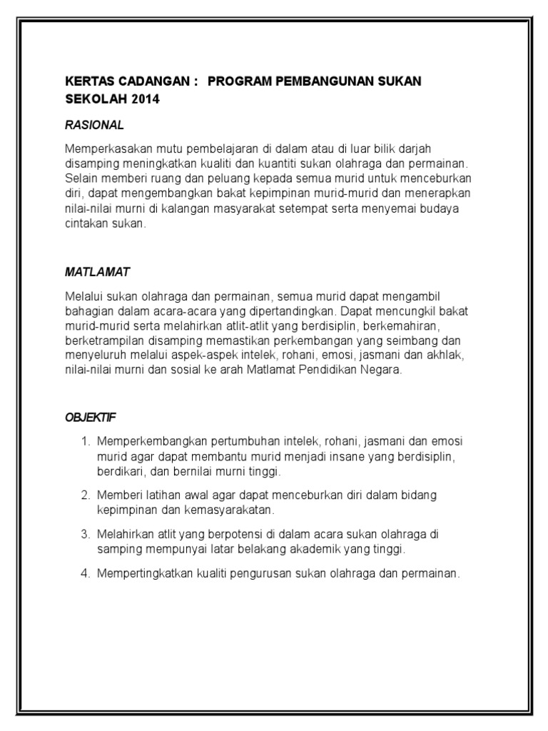 Kertas Cadangan Pembangunan Sukan