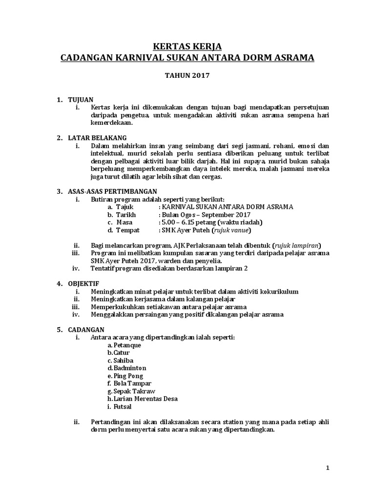 Kertas Kerja Sukan Tahunan 2018 Terkini Pages 1 16 Text Version Anyflip