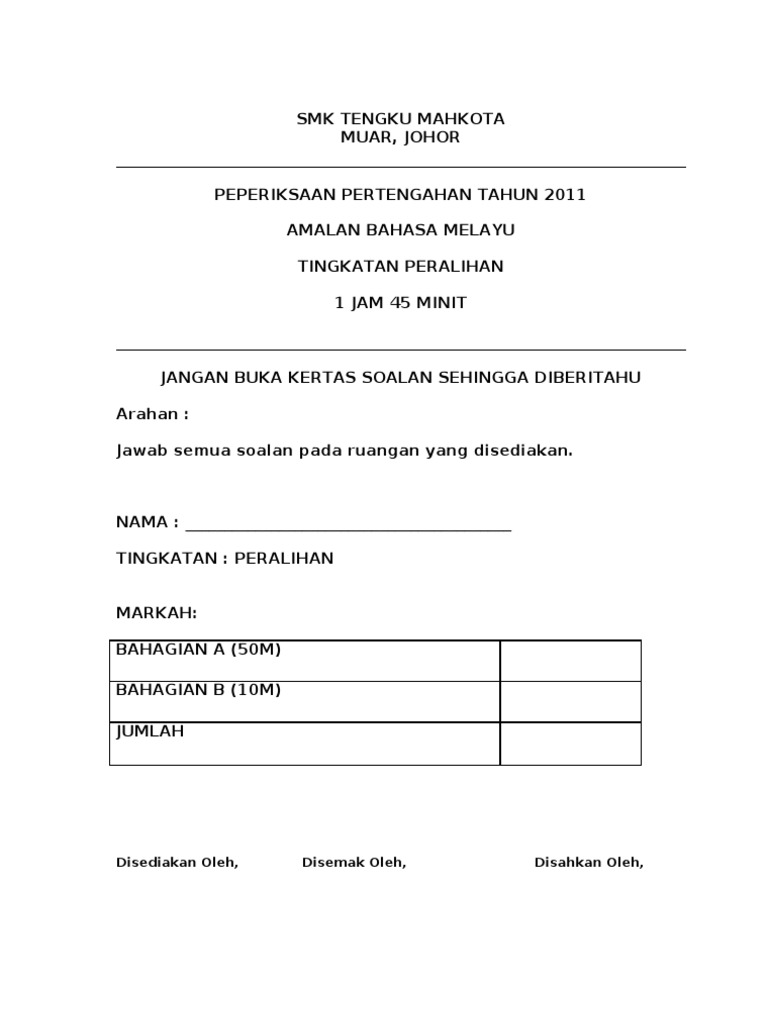 Doc Ujian Bm Peralihan Smk Dm Nurul Zahira Md Isa Academia Edu
