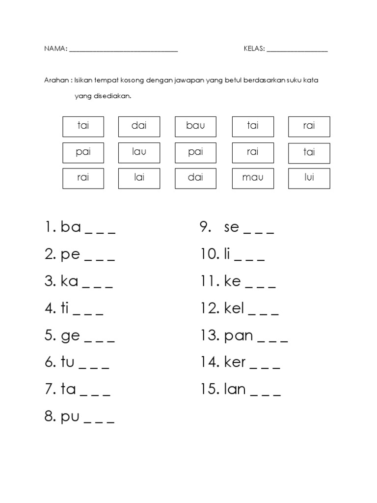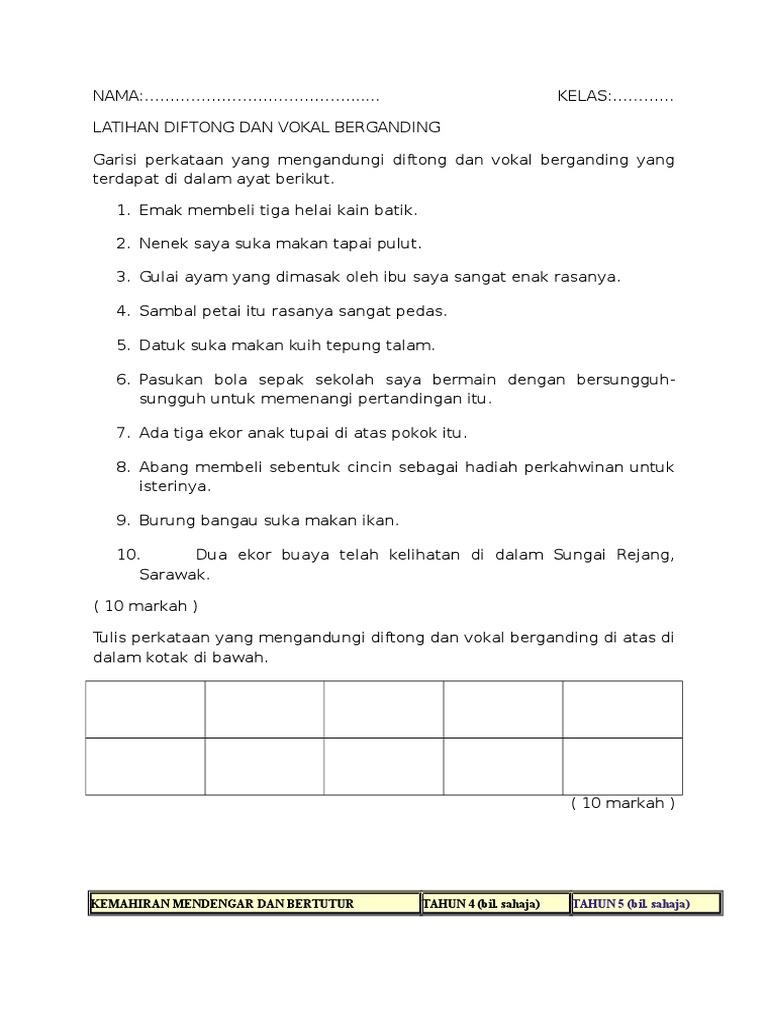 Latihan Diftong Dan Vokal Berganding