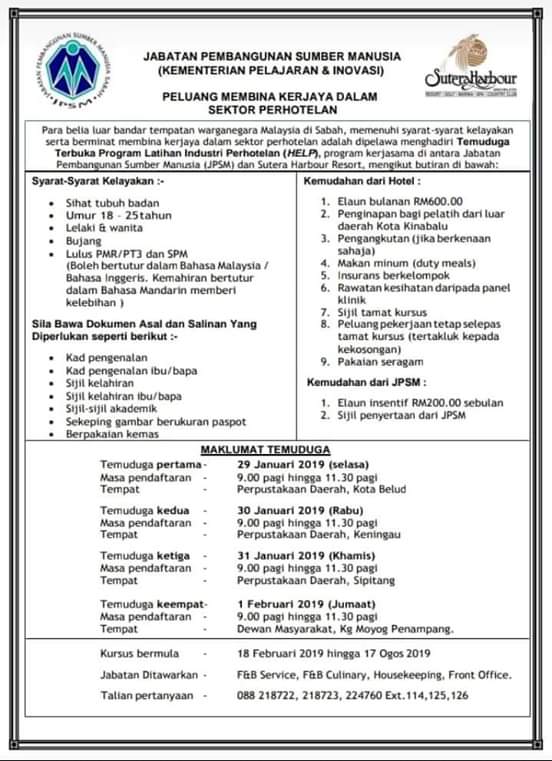 Temuduga Terbuka Program Latihan Industri Perhotelan Help Di Sutera Harbour Resort