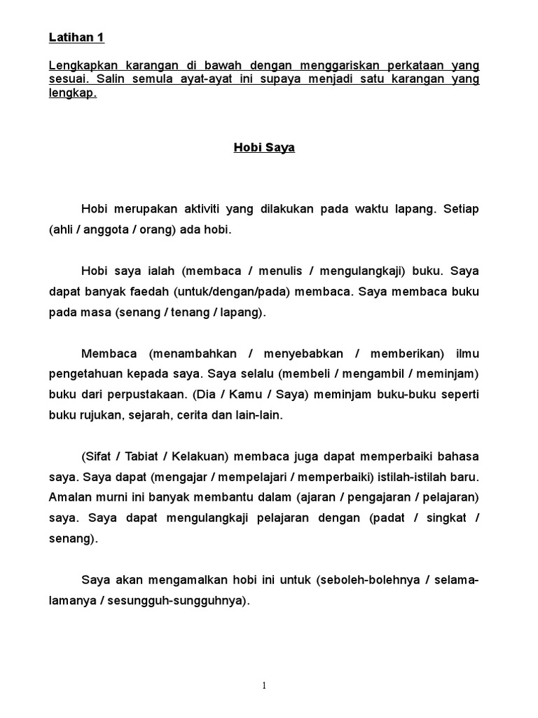 Latihan Asas Menulis Karangan Isi Tempat Kosong Docx