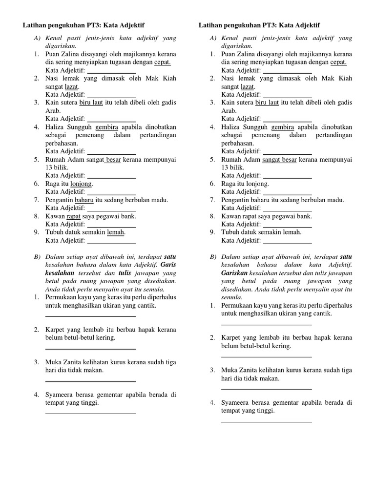 Contoh Soalan Kata Adjektif Upsr U Soalan
