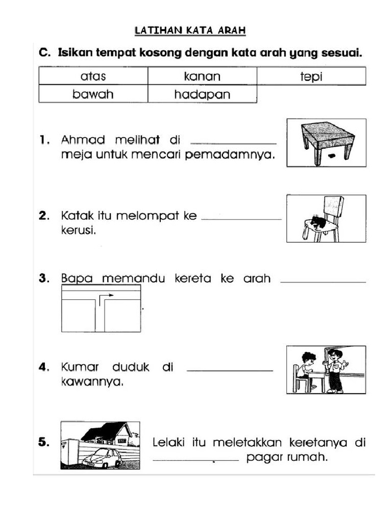 Latihan Kata Sendi Nama Kata Arah
