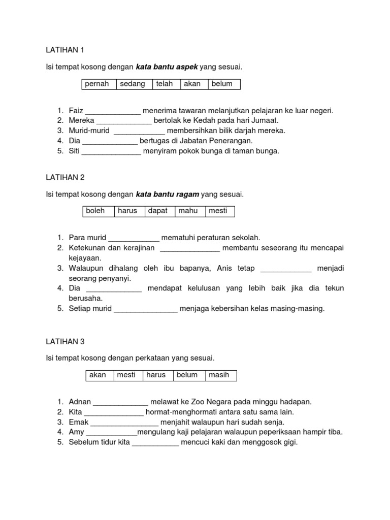 Latihan Kata Bantu