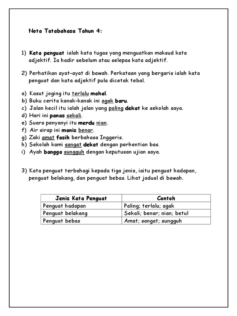Latihan kata penguat tahun 4. Digunakan di hadapan kata adjektif. Kata penguat kata penguat. Turut bergiat aktif dalam bidang kokurikulum hingga ke peringkat antarabangsa.