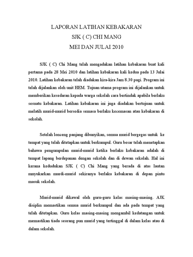 Karangan Latihan Kebakaran Di Sekolah Pt3