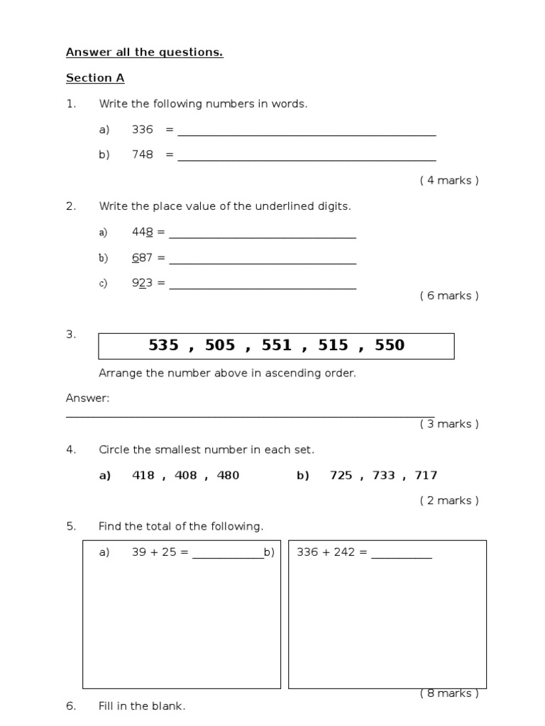 Soalan Matematik Tahun 2 Mac Kosong Kerji
