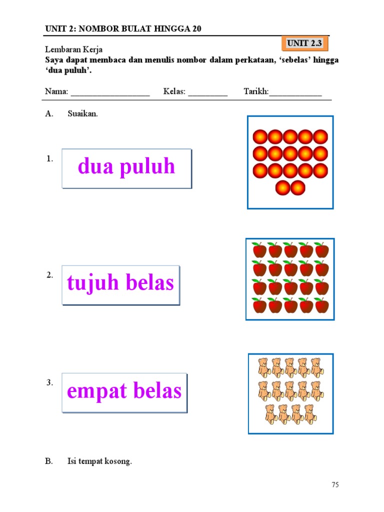 2 3 Menulis Nombor Dalam Perkataan Sehingga 20