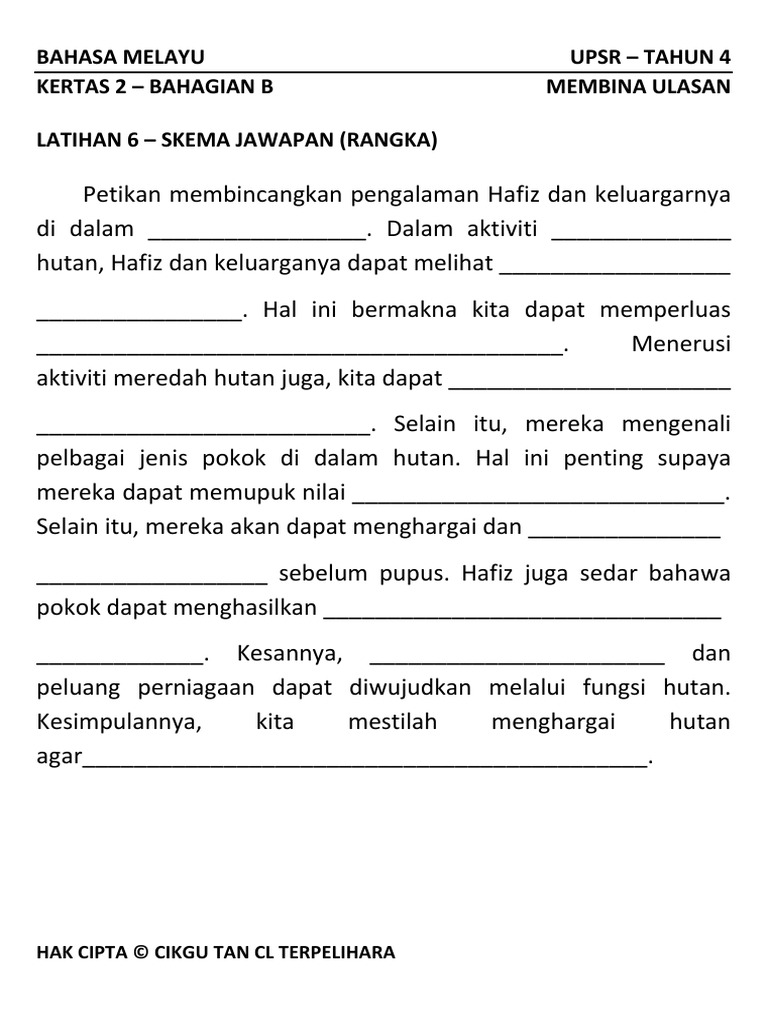 Soalan Ulasan Bahasa Melayu Tahun 6 J Kosong S