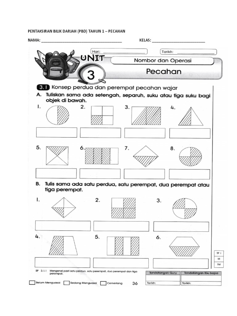Pentaksiran Bilik Darjah Pbd Tahun 1 Pecahan Nama Kelas