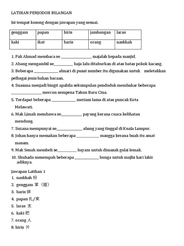 Free Download Pdf Modul Latihan Penjodoh Bilangan Bahasa Melayu Mycikgu Net