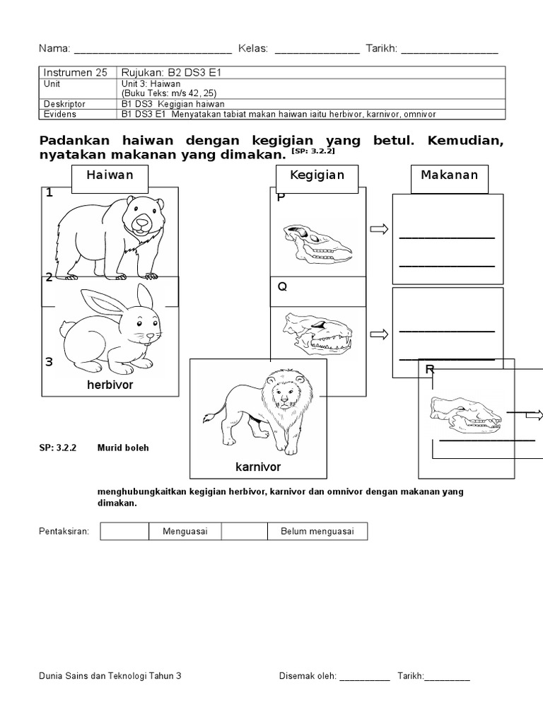 318238666 Dst Tahun 3 Latihan Tabiat Pemakanan Haiwan Doc