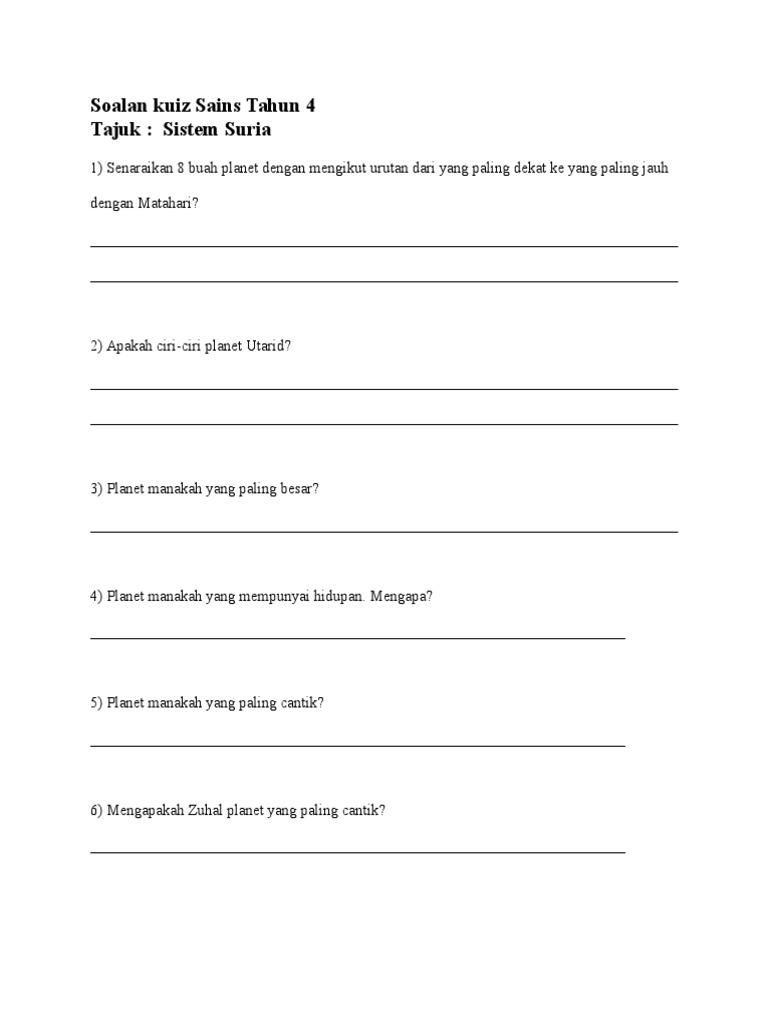 Soalan Sains Tahun 4 Sistem Suria Persoalan M