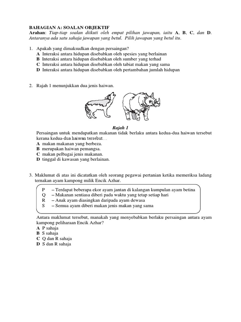 Bab 1 Interaksi Antara Hidupan Latihan Docx Document