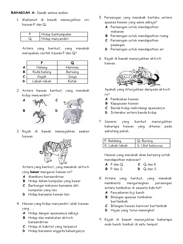 Bab 1 Interaksi Antara Hidupan Latihan School Work