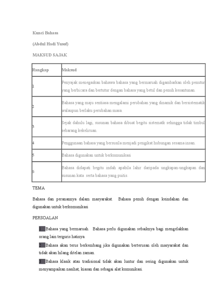 Kunci Bahasa Tingkatan 1