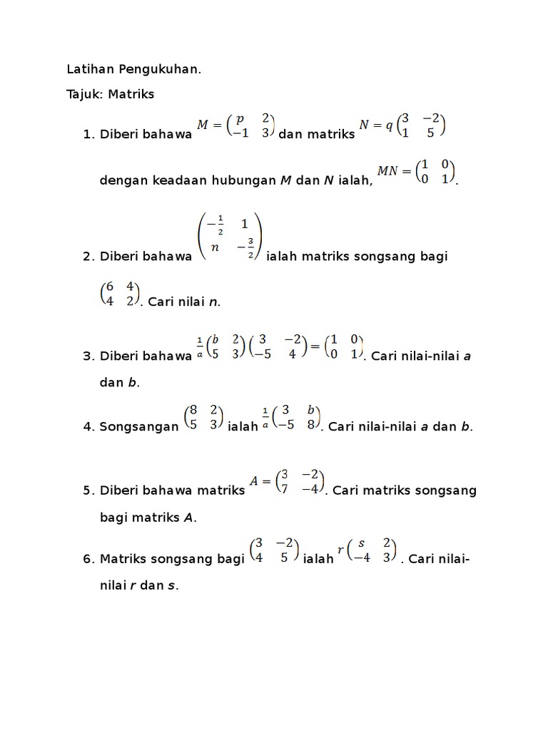 Soalan Matriks Songsang Tingkatan 5