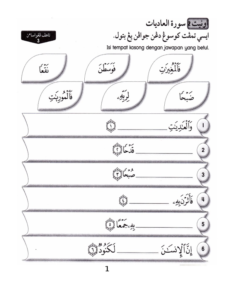 Latihan Hafazan Surah Tahun 4 At Takathur Interactive Worksheet