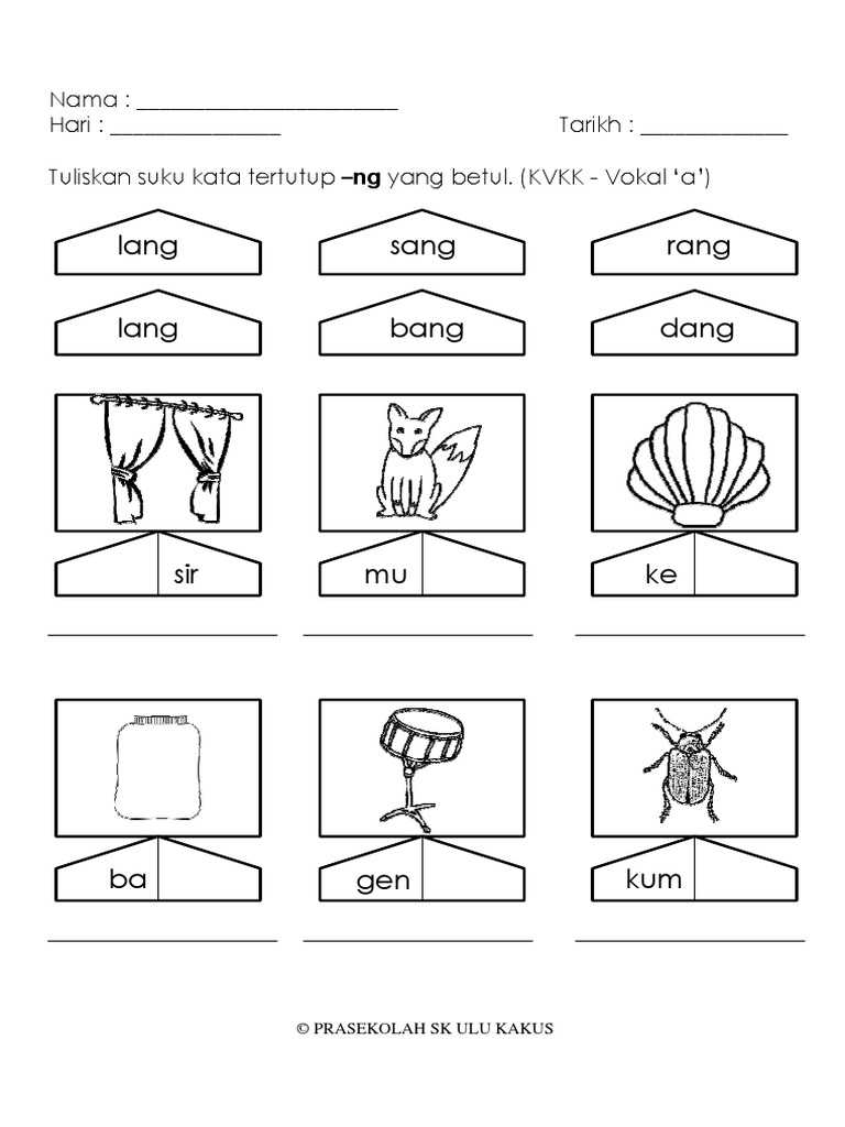 Latihan Menulis Suku Kata Tertutup Ng Untuk Prasekolah Dan Linus