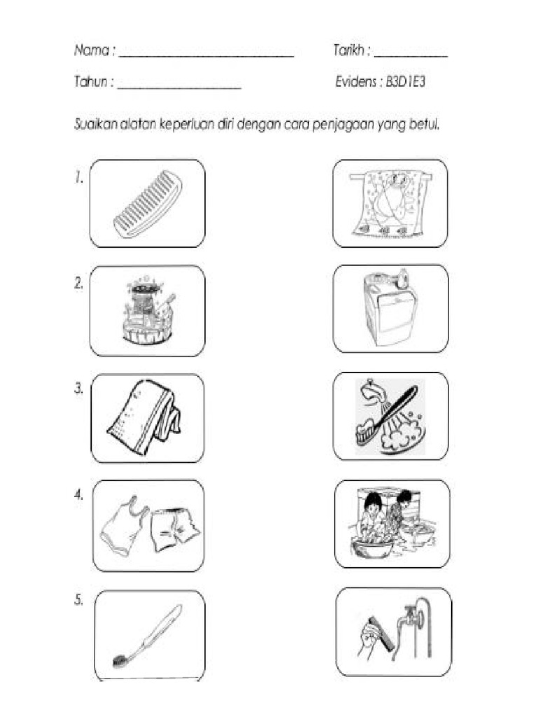 Contoh Lembaran Kerja Tajuk Kebersihan Pakaian Jom Basuh Baju Kawan Kawan