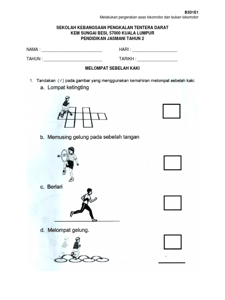 Contoh Lembaran Kerja Pj Melompat Sebelah Kaki