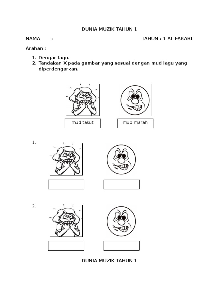 Pendidikan Awal Kanak Kanak Lembaran Kerja Subjek Muzik