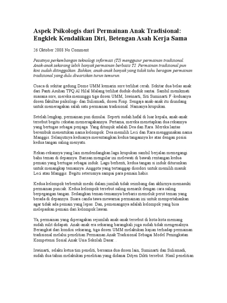 Rpp Kelas 3 Tema 5 Permainan Tradisional