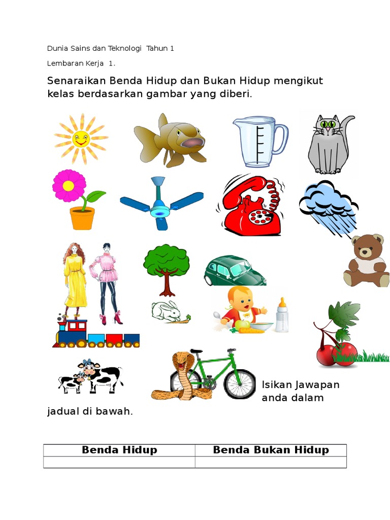 Lembaran Kerja Dst Tahun 1 Docx Benda Hidup Dan Bukan Hidup